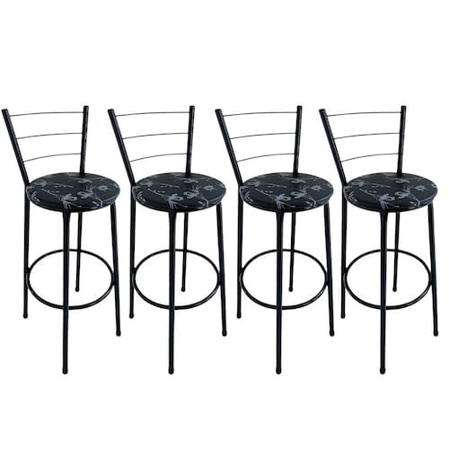 Banqueta Alta Itália Preta com Assento Floral Preto Jaddi Seja para acompanhar um café rápido no início do dia ou aquela confraternização especial com os amigos, a Banqueta Alta com Encosto será uma grande aliada na composição do seu espaço. Modelo alta, ela é ideal para acompanhar bancadas e balcões, seja na sala de jantar, espaço de churrasqueira ou até mesmo em seu estabelecimento comercial. Com design simples que conta com cor sóbria, a peça embeleza o seu espaço ao mesmo tempo que garante a comodidade ideal, afinal, o assento preenchido em espuma recebe superbem o corpo além do suporte para os pés. Produto que faz toda diferença no seu ambiente. Características da Banqueta Alta com Encosto Cor da Estrutura: PretaCor do Assento: Floral Preto Capacidade (kg): 120 kgMaterial da Estrutura: Tubos de Aço carbono (7/8 de polegada)Material do Assento: MDF e EspumaEncosto: Arame Dimensões da Banqueta Alta com Encosto Altura do assento até o chão (cm): 72 CmAltura do encosto até o chão (cm): 95 CmDiâmetro do assento: 32 Cm Conteúdo da Embalagem: 04 Banqueta Alta com Encosto Dicas Não deixe suas banquetas expostas ao sol por mais de 4 horas.Não use produtos abrasivos na limpeza de suas Banquetas.Usar um pano umedecido na limpeza da Banqueta e, logo em seguida, seque-as com um pano seco. A tonalidade da cor pode variar de acordo com o lote do fabricante e/ou as configurações de seu monitor. *Imagens meramente ilustrativas Garantia 3 Meses contra defeito de fabricação