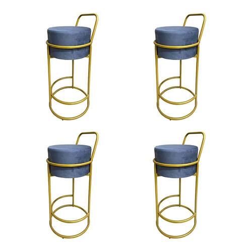 AS IMAGENS SÃO MERAMENTE ILUSTRATIVAS E PODEM SOFRER VARIAÇÕES DE COR E PEQUENOS DETALHES DE ACORDO COM O SEU MONITOR, ILUMINAÇÃO DO AMBIENTE E ATÉ MESMO A SUA PERCEPÇÃO 4 Banquetas Alta Redonda Base Dourada Veludo Cinza