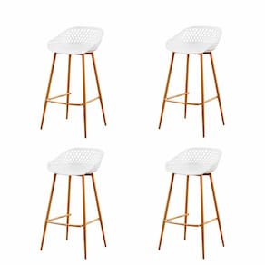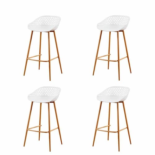 Kit 4 Banquetas Altas Clarice Sidera Rivattis Polipropileno Branca Base Metal Aço - Branco