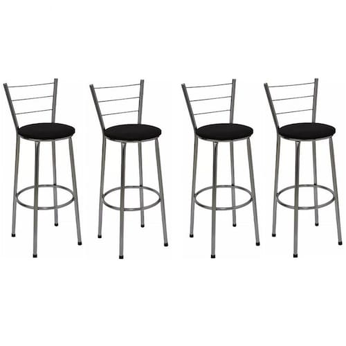 Banqueta Alta Itália Cromada com Assento Preto Jaddi Seja para acompanhar um café rápido no início do dia ou aquela confraternização especial com os amigos, a Banqueta Alta com Encosto será uma grande aliada na composição do seu espaço. Modelo alta, ela é ideal para acompanhar bancadas e balcões, seja na sala de jantar, espaço de churrasqueira ou até mesmo em seu estabelecimento comercial. Com design simples que conta com cor sóbria, a peça embeleza o seu espaço ao mesmo tempo que garante a comodidade ideal, afinal, o assento preenchido em espuma recebe superbem o corpo além do suporte para os pés. Produto que faz toda diferença no seu ambiente. Características da Banqueta Alta com Encosto Cor da Estrutura: CromadaCor do Assento: PretoCapacidade (kg): 120 kgMaterial da Estrutura: Tubos de Aço carbono (7/8 de polegada)Material do Assento: MDF e EspumaEncosto: Arame Dimensões da Banqueta Alta com Encosto Altura do assento até o chão (cm): 72 CmAltura do encosto até o chão (cm): 95 CmDiâmetro do assento: 32 Cm Conteúdo da Embalagem: 04 Banquetas Alta com Encosto Dicas Não deixe suas banquetas expostas ao sol por mais de 4 horas.Não use produtos abrasivos na limpeza de suas Banquetas.Usar um pano umedecido na limpeza da Banqueta e, logo em seguida, seque-as com um pano seco. A tonalidade da cor pode variar de acordo com o lote do fabricante e/ou as configurações de seu monitor. *Imagens meramente ilustrativas Garantia 3 Meses contra defeito de fabricação