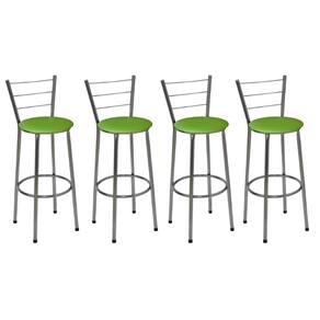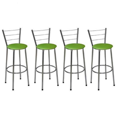 Banqueta Alta Itália Cromada com Assento Verde Jaddi Seja para acompanhar um café rápido no início do dia ou aquela confraternização especial com os amigos, a Banqueta Alta com Encosto será uma grande aliada na composição do seu espaço. Modelo alta, ela é ideal para acompanhar bancadas e balcões, seja na sala de jantar, espaço de churrasqueira ou até mesmo em seu estabelecimento comercial. Com design simples que conta com cor sóbria, a peça embeleza o seu espaço ao mesmo tempo que garante a comodidade ideal, afinal, o assento preenchido em espuma recebe superbem o corpo além do suporte para os pés. Produto que faz toda diferença no seu ambiente. Características da Banqueta Alta com Encosto Cor da Estrutura: CromadaCor do Assento: VerdeCapacidade (kg): 120 kgMaterial da Estrutura: Tubos de Aço carbono (7/8 de polegada)Material do Assento: MDF e EspumaEncosto: Arame Dimensões da Banqueta Alta com Encosto Altura do assento até o chão (cm): 72 CmAltura do encosto até o chão (cm): 95 CmDiâmetro do assento: 32 Cm Conteúdo da Embalagem: 04 Banquetas Alta com Encosto Dicas Não deixe suas banquetas expostas ao sol por mais de 4 horas.Não use produtos abrasivos na limpeza de suas Banquetas.Usar um pano umedecido na limpeza da Banqueta e, logo em seguida, seque-as com um pano seco. A tonalidade da cor pode variar de acordo com o lote do fabricante e/ou as configurações de seu monitor. *Imagens meramente ilustrativas Garantia 3 Meses contra defeito de fabricação