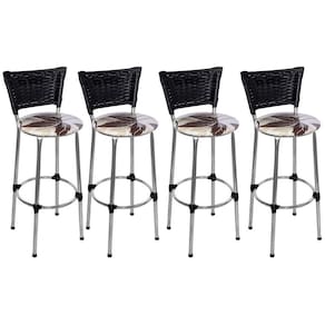 Banqueta Alta Cromada Junco Preto com Assento Floral Marrom Fortmix Seja para acompanhar um café rápido no início do dia ou aquela confraternização especial com os amigos, a Banqueta Alta com Encosto será uma grande aliada na composição do seu espaço. Modelo alta, ela é ideal para acompanhar bancadas e balcões, seja na sala de jantar, espaço de churrasqueira ou até mesmo em seu estabelecimento comercial. Com design simples que conta com cor sóbria e junco, a peça embeleza o seu espaço ao mesmo tempo que garante a comodidade ideal, afinal, o assento preenchido em espuma recebe superbem o corpo além do suporte para os pés. Produto que faz toda diferença no seu ambiente. Características da Banqueta Alta com Encosto Juncado Cor da Estrutura: Cromada Cor do Assento: Floral Marrom Capacidade (kg): 120 kg Material da estrutura: Tubos de Aço carbono (7/8 de polegada) Material do assento: MDF e Espuma Encosto: Junco Preto Dimensões da Banqueta Alta com Encosto Juncado Altura do assento até o chão (cm): 72 Cm Altura do encosto até o chão (cm): 95 Cm Diâmetro do assento: 32 Cm Conteúdo da Embalagem: 04 Banqueta Alta com Encosto Juncado Dicas Não deixe suas banquetas expostas ao sol por mais de 4 horas. Não use produtos abrasivos na limpeza de suas Banquetas. Usar um pano umedecido na limpeza da Banqueta e, logo em seguida, seque-as com um pano seco. A tonalidade da cor pode variar de acordo com o lote do fabricante e/ou as configurações de seu monitor. *Imagens meramente ilustrativas Garantia 3 Meses contra defeito de fabricação