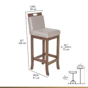 Banqueta Alta em Madeira Maciça Florença é ideal para acompanhar refeições rápidas e happy hour com amigos e família. Produzida em madeira maciça é um móvel bonito e resistente, seu tecido 100% poliéster, garante maior conforto a peça. Possui apoio para os pés. Acabamento da Estrutura: Verniz Almofada do assento: Fixa Altura do assento até o chão: 75 cm Altura do Encosto: 31 cm Altura Regulável: Não Ambiente Principal: Cozinha Cor: Pinhão/Preto Cor do Produto: Pinhão/Preto Dobrável: Não Enchimento do Assento: Espuma D-28 Escala de Brilho: Semi-Brilho Itens Inclusos: 04 Banqueta Alta Florença Linha ou Coleção: Florença Material do Assento: MDF Material do Encosto: Poliéster Necessita Montagem: Não Origem do Produto: Nacional Peso: 7 kg Possui Almofada no Assento: Sim Possui Apoio Para os Pés: sim Possui Encosto: Sim Possui Rodízio: Não Recomendações de Uso, Manutenção e Limpeza: Pano úmido Revestimento do Assento: linho Tipo de Assento: Fixo Tipo de Encosto: Fixo Tipo de Madeira Maciça: Eucalipto Marca: CCS Interiores