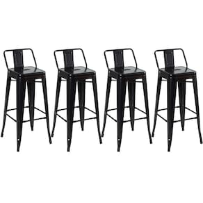 Kit 4 Banquetas Altas Industriais Pretas em Aço 76cm com Encosto – Estilo Tolix - Preto