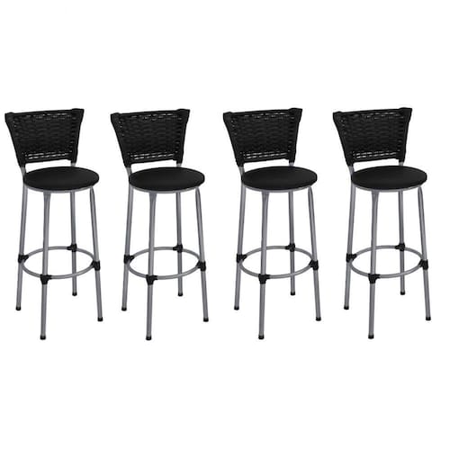 Kit 4 Banquetas Altas Prata Junco Preto com Assento Preto FortmixSeja para acompanhar um café rápido no início do dia ou aquela confraternização especial com os amigos, a Banqueta Alta com Encosto será uma grande aliada na composição do seu espaço. Modelo alta, ela é ideal para acompanhar bancadas e balcões, seja na sala de jantar, espaço de churrasqueira ou até mesmo em seu estabelecimento comercial.Com design simples que conta com cor sóbria e junco, a peça embeleza o seu espaço ao mesmo tempo que garante a comodidade ideal, afinal, o assento preenchido em espuma recebe superbem o corpo além do suporte para os pés.Produto que faz toda diferença no seu ambiente.Características da Banqueta Alta com Encosto JuncadoCor da Estrutura: PrataCor do Assento: PretoCapacidade (kg): 120 kgMaterial da estrutura: Tubos de Aço carbono (7/8 de polegada)Material do assento: MDF e EspumaEncosto: Junco PretoDimensões da Banqueta Alta com Encosto Juncado Altura do assento até o chão (cm): 72 CmAltura do encosto até o chão (cm): 95 CmDiâmetro do assento: 32 CmConteúdo da Embalagem: 04 Banquetas Altas com Encosto JuncadoDicasNão deixe suas banquetas expostas ao sol por mais de 4 horas.Não use produtos abrasivos na limpeza de suas Banquetas.Usar um pano umedecido na limpeza da Banqueta e, logo em seguida, seque-as com um pano seco.A tonalidade da cor pode variar de acordo com o lote do fabricante e/ou as configurações de seu monitor.*Imagens meramente ilustrativasGarantia3 Meses contra defeito de fabricação