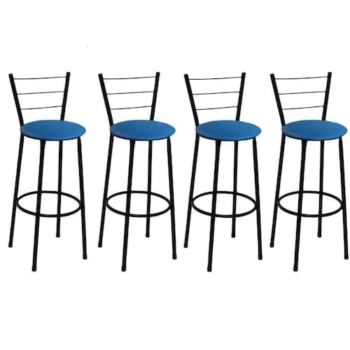 Kit 4 Banquetas Altas Itália Preta com Assento Azul FortmixSeja para acompanhar um café rápido no início do dia ou aquela confraternização especial com os amigos, a Banqueta Alta com Encosto será uma grande aliada na composição do seu espaço. Modelo alta, ela é ideal para acompanhar bancadas e balcões, seja na sala de jantar, espaço de churrasqueira ou até mesmo em seu estabelecimento comercial.Com design simples que conta com cor sóbria, a peça embeleza o seu espaço ao mesmo tempo que garante a comodidade ideal, afinal, o assento preenchido em espuma recebe superbem o corpo além do suporte para os pés.Produto que faz toda diferença no seu ambiente.Características da Banqueta Alta com EncostoCor da Estrutura: PretaCor do Assento: AzulCapacidade (kg): 120 kgMaterial da estrutura: Tubos de Aço carbono (7/8 de polegada)Material do assento: MDF e EspumaEncosto: ArameDimensões da Banqueta Alta com Encosto Altura do assento até o chão (cm): 72 CmAltura do encosto até o chão (cm): 95 CmDiâmetro do assento: 32 CmConteúdo da Embalagem: 04 Banquetas Altas com EncostoDicasNão deixe suas banquetas expostas ao sol por mais de 4 horas.Não use produtos abrasivos na limpeza de suas Banquetas.Usar um pano umedecido na limpeza da Banqueta e, logo em seguida, seque-as com um pano seco.A tonalidade da cor pode variar de acordo com o lote do fabricante e/ou as configurações de seu monitor.*Imagens meramente ilustrativasGarantia3 Meses contra defeito de fabricação