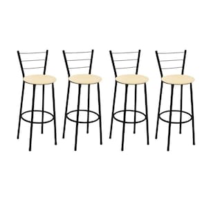 Kit 4 Banquetas Altas Preta com Encosto Assento Bege - Preto