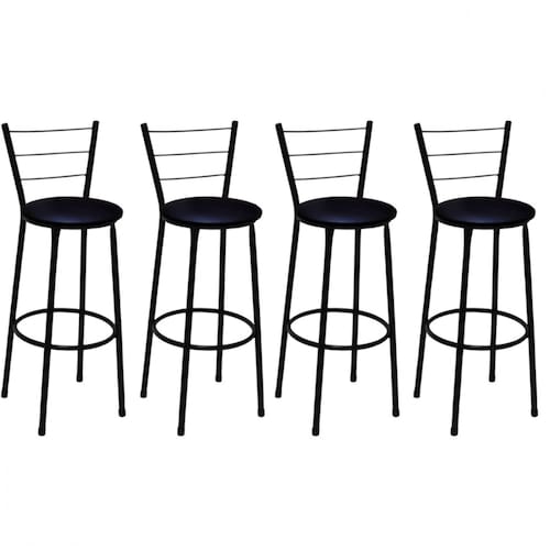Kit 4 Banquetas Altas Itália Preta com Assento Preto FortmixSeja para acompanhar um café rápido no início do dia ou aquela confraternização especial com os amigos, a Banqueta Alta com Encosto será uma grande aliada na composição do seu espaço. Modelo alta, ela é ideal para acompanhar bancadas e balcões, seja na sala de jantar, espaço de churrasqueira ou até mesmo em seu estabelecimento comercial.Com design simples que conta com cor sóbria, a peça embeleza o seu espaço ao mesmo tempo que garante a comodidade ideal, afinal, o assento preenchido em espuma recebe superbem o corpo além do suporte para os pés.Produto que faz toda diferença no seu ambiente.Características da Banqueta Alta com EncostoCor da Estrutura: PretaCor do Assento: PretoCapacidade (kg): 120 kgMaterial da estrutura: Tubos de Aço carbono (7/8 de polegada)Material do assento: MDF e EspumaEncosto: ArameDimensões da Banqueta Alta com Encosto Altura do assento até o chão (cm): 72 CmAltura do encosto até o chão (cm): 95 CmDiâmetro do assento: 32 CmConteúdo da Embalagem: 04 Banquetas Altas com EncostoDicasNão deixe suas banquetas expostas ao sol por mais de 4 horas.Não use produtos abrasivos na limpeza de suas Banquetas.Usar um pano umedecido na limpeza da Banqueta e, logo em seguida, seque-as com um pano seco.A tonalidade da cor pode variar de acordo com o lote do fabricante e/ou as configurações de seu monitor.*Imagens meramente ilustrativasGarantia3 Meses contra defeito de fabricação