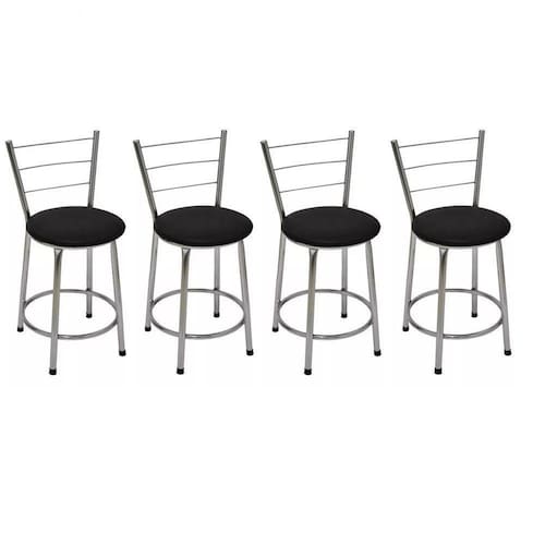 Kit 4 Banquetas Baixas Cromada com Assento Preto Fortmix