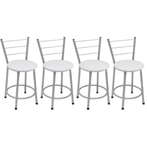 Kit 4 Banquetas Baixas Prata com Assento Branco FortmixSeja para acompanhar um café rápido no início do dia ou aquela confraternização especial com os amigos, a Banqueta Baixa com Encosto será uma grande aliada na composição do seu espaço. Modelo baixa, ela é ideal para acompanhar bancadas e balcões, seja na sala de jantar, espaço de churrasqueira ou até mesmo em seu estabelecimento comercial.Com design simples que conta com cor sóbria, a peça embeleza o seu espaço ao mesmo tempo que garante a comodidade ideal, afinal, o assento preenchido em espuma recebe superbem o corpo além do suporte para os pés. Produto que faz toda diferença no seu ambiente.Características da Banqueta Baixa com EncostoCor da estrutura: PrataCor do Assento: BrancoCapacidade (kg): 120 kgMaterial da estrutura: Tubos de Aço carbono (7/8 de polegada)Material do assento: MDF e EspumaEncosto: JuncoDimensões Altura do assento até o chão (cm): 47 CmAltura do encosto até o chão (cm): 69 CmDiâmetro do assento: 32 CmConteúdo da Embalagem: 04 Banquetas Baixas com EncostoDicasNão deixe suas banquetas expostas ao sol por mais de 4 horas;Não use produtos abrasivos na limpeza de suas Banquetas;Usar um pano umedecido na limpeza da Banqueta e, logo em seguida, seque-as com um pano seco.A tonalidade da cor pode variar de acordo com o lote do fabricante e/ou as configurações de seu monitor.*Imagens meramente ilustrativasGarantia3 Meses contra defeito de fabricação