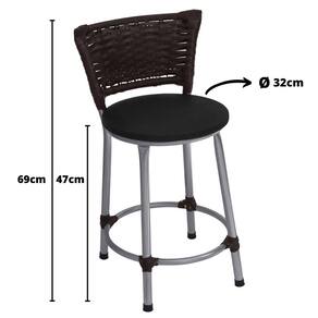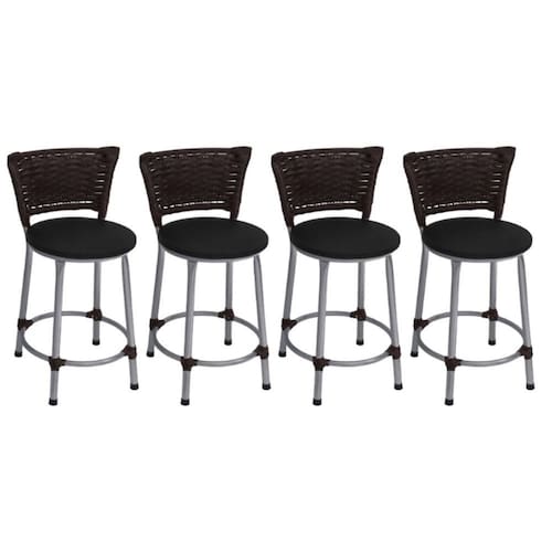 Kit 4 Banquetas Baixas Prata Junco Argila com Assento Preto FortmixSeja para acompanhar um café rápido no início do dia ou aquela confraternização especial com os amigos, a Banqueta Baixa com Encosto será uma grande aliada na composição do seu espaço. Modelo baixa, ela é ideal para acompanhar bancadas e balcões, seja na sala de jantar, espaço de churrasqueira ou até mesmo em seu estabelecimento comercial.Com design simples que conta com cor sóbria, a peça embeleza o seu espaço ao mesmo tempo que garante a comodidade ideal, afinal, o assento preenchido em espuma recebe superbem o corpo além do suporte para os pés. Produto que faz toda diferença no seu ambiente.Características da Banqueta Baixa com EncostoCor da estrutura: PrataCor do Assento: PretoCapacidade (kg): 120 kgMaterial da estrutura: Tubos de Aço carbono (7/8 de polegada)Material do assento: MDF e EspumaEncosto: JuncoDimensões Altura do assento até o chão (cm): 47 CmAltura do encosto até o chão (cm): 69 CmDiâmetro do assento: 32 CmConteúdo da Embalagem: 04 Banquetas Baixas com EncostoDicasNão deixe suas banquetas expostas ao sol por mais de 4 horas;Não use produtos abrasivos na limpeza de suas Banquetas;Usar um pano umedecido na limpeza da Banqueta e, logo em seguida, seque-as com um pano seco.A tonalidade da cor pode variar de acordo com o lote do fabricante e/ou as configurações de seu monitor.*Imagens meramente ilustrativasGarantia3 Meses contra defeito de fabricação