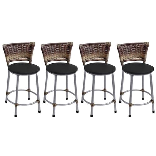 Banqueta Baixa Prata Junco Capuccino com Assento Preto Fortmix