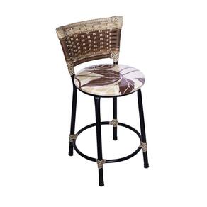 Banqueta Baixa Preta Junco Capuccino com Assento Floral Marrom Fortmix