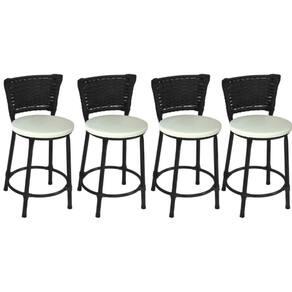 Kit 4 Banquetas Baixas Preta com Encosto Junco Preto Assento Branco