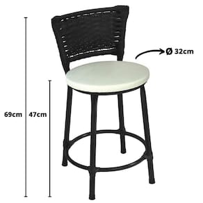 Banqueta Baixa Preta Junco Preto com Assento Branco Fortmix   Seja para acompanhar um café rápido no início do dia ou aquela confraternização especial com os amigos, a Banqueta Baixa com Encosto será uma grande aliada na composição do seu espaço. Modelo baixa, ela é ideal para acompanhar bancadas e balcões, seja na sala de jantar, espaço de churrasqueira ou até mesmo em seu estabelecimento comercial.   Com design simples que conta com cor sóbria, a peça embeleza o seu espaço ao mesmo tempo que garante a comodidade ideal, afinal, o assento preenchido em espuma recebe superbem o corpo além do suporte para os pés.  Produto que faz toda diferença no seu ambiente.   Características da Banqueta Baixa com Encosto   Cor da Estrutura: Preta Cor do Assento: Branco Capacidade (kg): 120 kg Material da estrutura: Tubos de Aço carbono (7/8 de polegada) Material do assento: MDF e Espuma Encosto: Junco   Dimensões    Altura do assento até o chão (cm): 47 Cm Altura do encosto até o chão (cm): 69 Cm Diâmetro do assento: 32 Cm   Conteúdo da Embalagem: 04 Banqueta Baixa com Encosto   Dicas   Não deixe suas banquetas expostas ao sol por mais de 4 horas; Não use produtos abrasivos na limpeza de suas Banquetas; Usar um pano umedecido na limpeza da Banqueta e, logo em seguida, seque-as com um pano seco.   A tonalidade da cor pode variar de acordo com o lote do fabricante e/ou as configurações de seu monitor.   *Imagens meramente ilustrativas   Garantia   3 Meses contra defeito de fabricação