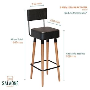 A banqueta Barcelona, possui 04 pés de madeira eucalipto com 60 cm de altura, e encosto estruturado, com seu design moderno, pode ser usada em sua área gourmet, área externa.