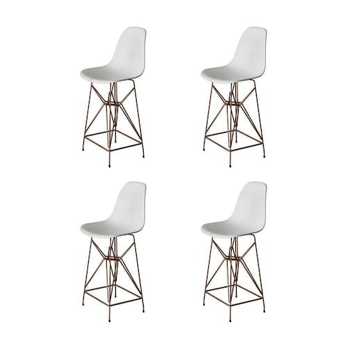 Kit 4 Banquetas Bistrô Alta Eames Branca Base Ferro CobreA Banqueta Bistrô Alta Eames além de possui um design moderno, traz um toque extra de charme na decoração do seu ambiente. Feita com material de qualidade proporciona conforto e harmonia para receber convidados com estilo. Possui uma curvatura ergonômica que se encaixa perfeitamente ao corpo.Tipo: BanquetaModelo: Eames BistrôCor do Assento: BrancoCor da Base: CobreQuantidade: 4 BanquetasCARACTERÍSTICASBase: FerroAssento: Plástico polipropilenoDIMENSÕES DO PRODUTOAltura: 101,5cmAltura assento até o chão: 70,5cmLargura: 40cmComprimento: 40cmIMAGENS MERAMENTE ILUSTRATIVAS, PODENDO HAVER UMA PEQUENA VARIAÇÃO NA COR DEPENDENDO DE CADA TELA OU MONITOR.Kit 4 Banquetas Bistrà Alta Eames Branca Base Ferro Cobre