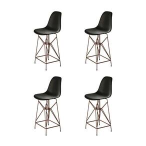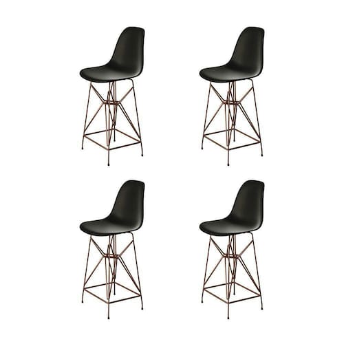 Kit 4 Banquetas Bistrô Alta Eames Preta Base Ferro CobreA Banqueta Bistrô Alta Eames além de possui um design moderno, traz um toque extra de charme na decoração do seu ambiente. Feita com material de qualidade proporciona conforto e harmonia para receber convidados com estilo. Possui uma curvatura ergonômica que se encaixa perfeitamente ao corpo.Tipo: BanquetaModelo: Eames BistrôCor do Assento: PretoCor da Base: CobreQuantidade: 4 BanquetasCARACTERÍSTICASBase: FerroAssento: Plástico polipropilenoDIMENSÕES DO PRODUTOAltura: 101,5cmAltura assento até o chão: 70,5cmLargura: 40cmComprimento: 40cmIMAGENS MERAMENTE ILUSTRATIVAS, PODENDO HAVER UMA PEQUENA VARIAÇÃO NA COR DEPENDENDO DE CADA TELA OU MONITOR.Kit 4 Banquetas Bistrà Alta Eames Preta Base Ferro Cobre