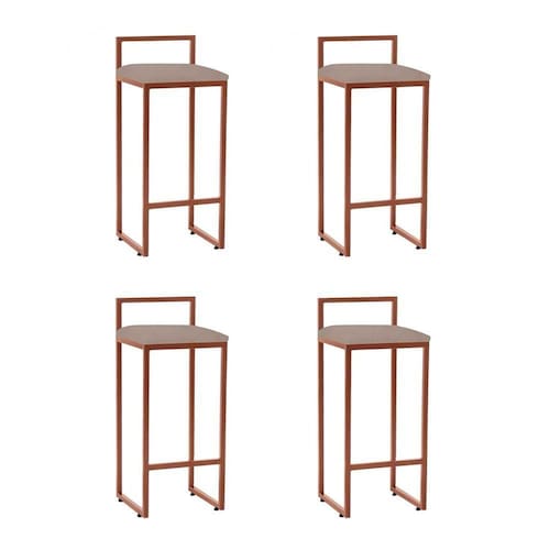 Kit 4 Banquetas Altas Industriais Em Aço Dori Cobre Assento Suede Bege