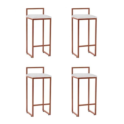 Kit 4 Banquetas Altas Industriais Em Aço Dori Cobre Assento Suede Branco
