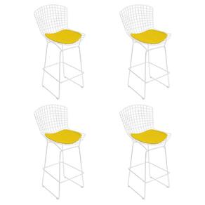 AS IMAGENS SÃO MERAMENTE ILUSTRATIVAS E PODEM SOFRER VARIAÇÕES DE COR E PEQUENOS DETALHES DE ACORDO COM O SEU MONITOR, ILUMINAÇÃO DO AMBIENTE E ATÉ MESMO A SUA PERCEPÇÃO VISUAL.Kit 4 Banquetas Bistrà Bertoia Branca D60 com Assento Amarelo