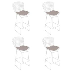 AS IMAGENS SÃO MERAMENTE ILUSTRATIVAS E PODEM SOFRER VARIAÇÕES DE COR E PEQUENOS DETALHES DE ACORDO COM O SEU MONITOR, ILUMINAÇÃO DO AMBIENTE E ATÉ MESMO A SUA PERCEPÇÃO VISUAL.Kit 4 Banquetas Bistrà Bertoia Branca D70 com Assento Bege