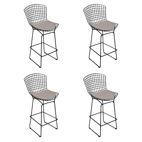 AS IMAGENS SÃO MERAMENTE ILUSTRATIVAS E PODEM SOFRER VARIAÇÕES DE COR E PEQUENOS DETALHES DE ACORDO COM O SEU MONITOR, ILUMINAÇÃO DO AMBIENTE E ATÉ MESMO A SUA PERCEPÇÃO VISUAL.Kit 4 Banquetas Bistrà Bertoia Preta D80 com Assento Bege