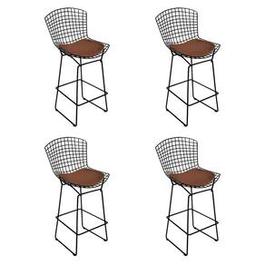 AS IMAGENS SÃO MERAMENTE ILUSTRATIVAS E PODEM SOFRER VARIAÇÕES DE COR E PEQUENOS DETALHES DE ACORDO COM O SEU MONITOR, ILUMINAÇÃO DO AMBIENTE E ATÉ MESMO A SUA PERCEPÇÃO VISUAL.Kit 4 Banquetas Bistrà Bertoia Preta D80 com Assento Marrom