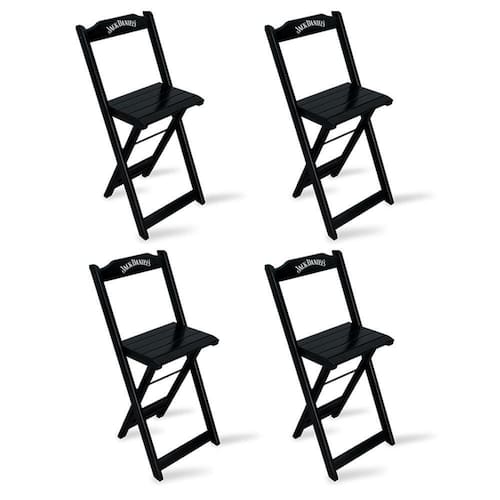 Kit 4 Banquetas Bistrô De Madeira Dobravel Jack Daniel's Preta - Cor: Preto