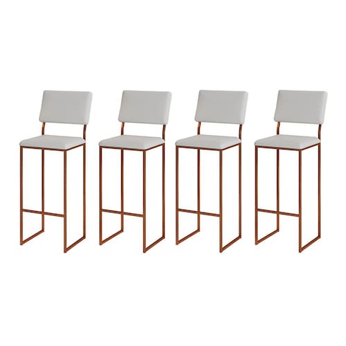 Características: Tipo: Banqueta Modelo: Nina Estilo: Industrial e Moderno Estrutura: Aço Carbono Cobre Assento: Estofado Tecido do Assento: Corino Cor do Assento: Branco