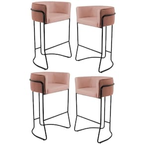 Kit 4 Banquetas Decorativas Base Aço Preto Betina C-105 Linho Rosê - Domi