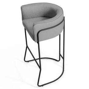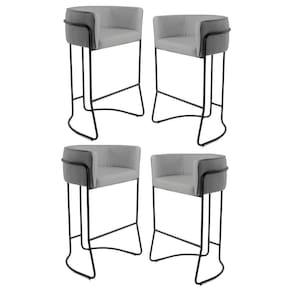 Kit 4 Banquetas Decorativas Base Aço Preto Betina C-416 Linho Cinza Escuro - Domi