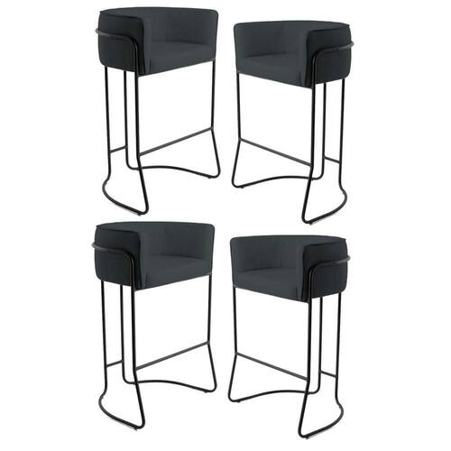 Kit 4 Banquetas Decorativas Base Aço Preto Betina D-465 Linho - Domi
