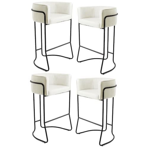 Kit 4 Banquetas Decorativas Base Aço Preto Betina Veludo C-309 Bege - Domi