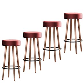 Kit 4 Banquetas em Madeira 4 Pés Palito Berlin Vermelho Telha - Salaone