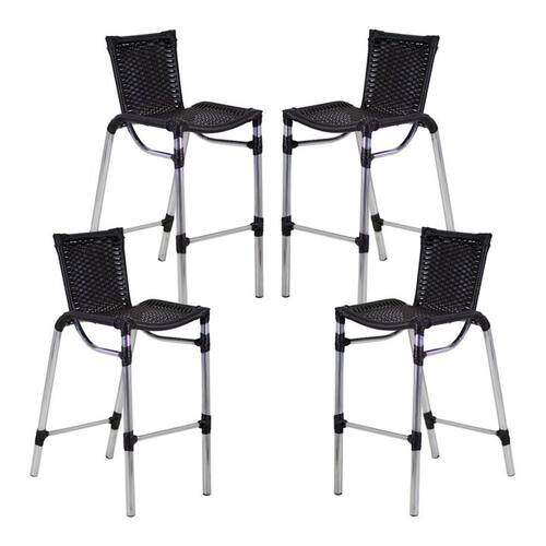 Kit 4 Banquetas Fortaleza Em Alumínio Alta Edícula Cozinha e Balcao - Preto