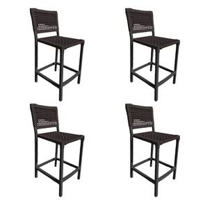 Kit 4 Banquetas França em Corda Náutica e Base em Alumínio Preta para Área Gourmet Marrom