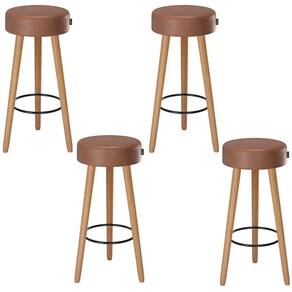Kit 4 Banquetas Londres Alta 70cm Estofada Café - Salaone - Marrom