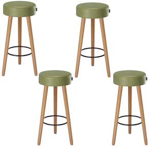Kit 4 Banquetas Londres Alta 70cm Estofada Verde - Salaone