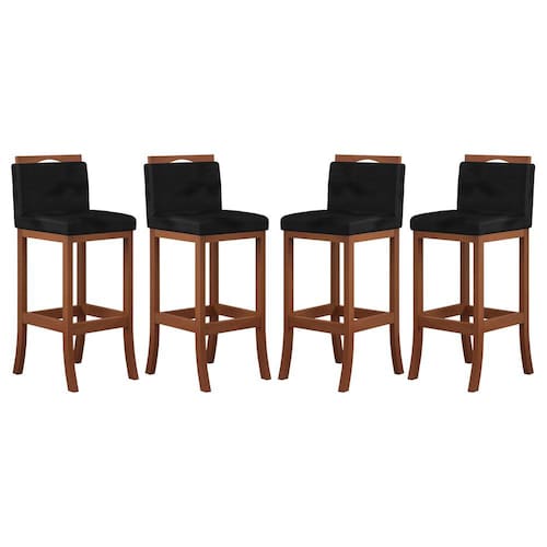 Kit 4 Banquetas Média Estofada Turim Madeira Castanho Suede CCS - Preto