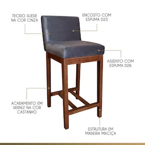 A Banqueta Média Lisboa é uma peça de destaque para qualquer ambiente, produzida em Madeira Maciça com acabamento em Verniz Castanho, garantindo durabilidade e elegância. Seu assento e encosto preenchidos com Espuma D26 e D23, respectivamente, oferecem o máximo conforto para refeições e momentos de descontração. Além disso, o revestimento em Tecido Suede na cor Cinza confere um toque moderno e versátil. Seja na cozinha, sala de jantar ou espaço gourmet, essa banqueta é a escolha perfeita para agregar charme e funcionalidade ao lar!