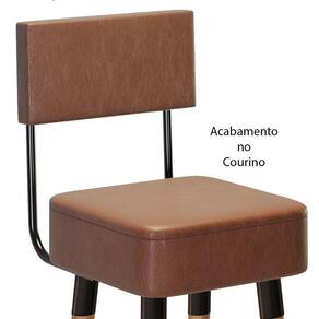 Características da Banqueta Alta para Bancada: - Altura da espuma do assento 2 cm com densidade D-28, certificada e com origem de qualidade comprovada; - Opção de assento nos tecidos couríssimo ou suede, estruturado com madeira de altíssima qualidade de reflorestamento, eucalipto seco evitando fungo e mofo; - Base do assento e fundo em MDF e MDP de 15 mm; - Arco em aço, com pintura especial epóxi; - 04 pés de madeira eucalipto com 60 cm de altura; - Peso suportado de até 110 kg; - Acompanha 4 unidades; - Por se tratar de um produto artesanal, pode ter pequenas variações nas medidas informadas acima;