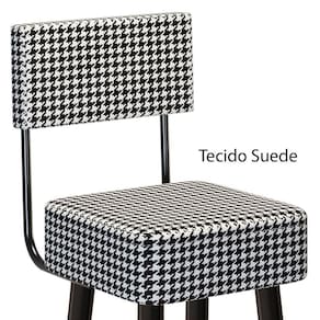Características da Banqueta Alta para Bancada: - Altura da espuma do assento 2 cm com densidade D-28, certificada e com origem de qualidade comprovada; - Opção de assento nos tecidos couríssimo ou suede, estruturado com madeira de altíssima qualidade de reflorestamento, eucalipto seco evitando fungo e mofo; - Base do assento e fundo em MDF e MDP de 15 mm; - Arco em aço, com pintura especial epóxi; - 04 pés de madeira eucalipto com 60 cm de altura; - Peso suportado de até 110 kg; - Acompanha 4 unidades; - Por se tratar de um produto artesanal, pode ter pequenas variações nas medidas informadas acima;