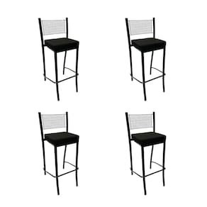 Kit 4 Banquetas para cozinha Empilhável preta assento em linho cor preto altura 65cm - Poltronas do Sul