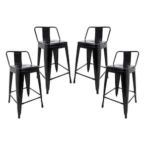Kit 4 Banquetas Tolix Industrial Médias com Encosto Pretas