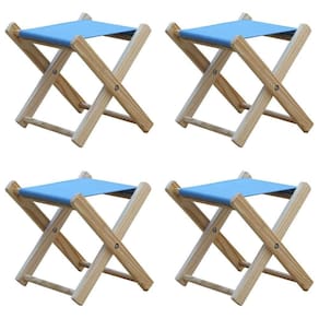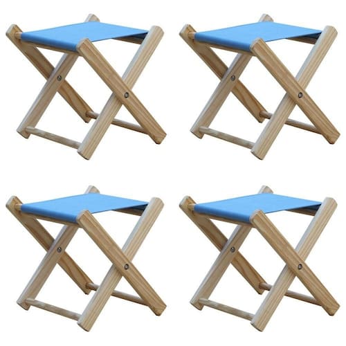 Kit 4 Banquinho De Madeira Banqueta Pescador-azul Claro
