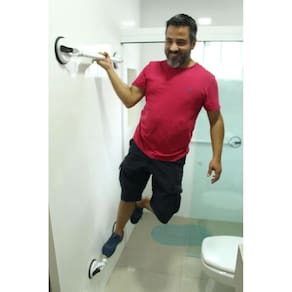 A barra de apoio foi desenvolvida para suportar uma carga de até 60KG ela é recomendada para pessoas com a mobilidade reduzida e para aqueles que desejam um pouco mais de segurança.