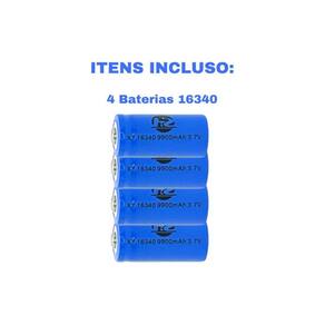 Este anúncio contém: 4 Baterias Recarregáveis 16340 3,7V 9900mah; Detalhes da Bateria: Bateria de alta capacidade; Modelo: 16340; Capacidade: 9900mAh; Voltagem: 3,7V; Dimensões: Altura: 3,4 cm; Largura: 1,6 cm; O produto anunciado é uma bateria 16340, não é uma pilha, não utilize este produto para substituir pilhas pois pode queimar o seu aparelho. Estas baterias são projetadas para se adaptar perfeitamente a uma variedade de dispositivos, desde lanternas até microfones e outros equipamentos eletrônicos. A sua versatilidade torna-as indispensáveis para qualquer pessoa que dependa de fontes de energia eficientes e de alta qualidade. Com uma incrível capacidade, estas baterias fornecem uma fonte de energia robusta e duradoura. Nunca mais se preocupe com quedas de energia repentinas ou interrupções nas suas atividades. Desfrute de horas ininterruptas de iluminação potente ou de gravações impecáveis. Esqueça a necessidade constante de comprar pilhas descartáveis. Com as Baterias Recarregáveis, você pode recarregar facilmente para um desempenho consistente. Além de ser uma escolha sustentável, você economizará dinheiro a longo prazo, investindo em um produto que pode ser recarregado centenas de vezes. Orientações Quanto a Bateria: Não deixe sem carga pois isto afeta diretamente a vida útil da Bateria. Carregamento total de 10 à 12 Horas. Aguarde até que sua total capacidade de carga esteja completa. Seja bem vindo Você chegou em uma equipe especializada para melhor te atender. Todas as fotos são de produtos reais e de exclusividade da nossa loja, sendo assim apenas nós temos o direito de imagem sob qualquer mercadoria anunciada. Veja nossos outros produtos um pouco mais abaixo em Mais Anúncios do Vendedor. Você chegou até aqui se você tem alguma dúvida pendente sobre o produto anunciado nos diga. Estamos sempre aqui para lhe responder sempre A Nossa empresa é extremamente e especializada com produtos de alta qualidade, pois nosso objetivo é ver vocês clientes satisfeitos com os produtos e atendimento. Já as compras efetuadas depois das 13h, sabados, domingos e feriados, serão enviadas no próximo dia útil. Vocês enviam para todo o Brasil Quanto fica o e qual o prazo de entrega R: Enviamos para todo o Brasil. Para conferir o ou o prazo basta verificar no campo acima, ao lado das fotos, ou entrar em contato conosco para mais informações, caso ainda tenha dúvidas. Todos nossos produtos possuem . Esse produto vem bem embalado R: Sim, todos nossos produtos são muito bem embalados para evitar qualquer chateação para nossos clientes. Ele vem igual está na foto R: Sim, as fotos de nossos produtos são tiradas por nós, para garantir melhores detalhes de informações visuais, garantindo assim melhor entendimento de como realmente é o produto.
