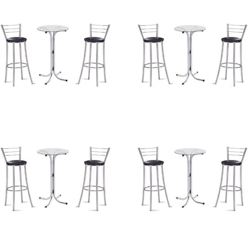 Kit 4 Bistros Com 4 Banquetas Cromadas-gatmagazine O conjunto Bistrô com banquetas GatMagazine além de bonito e charmoso traz harmonia para o seu ambiente!O Bistrô e a banqueta são feitos em aço cromado que traz mais resistência ao produto,O tampo do Bistrô é em vidro de 6mm com 60 centimetros de diamêtro.O produto é próprio para cozinhas,sala de jantar ou espaços gourmet. Marca: NOVA DECOR