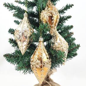 Kit 4 Bola De Natal Dourada Decorada Pião Para Árvore Luxo Natal Brilhante: Bolas de Natal para Sua Árvore